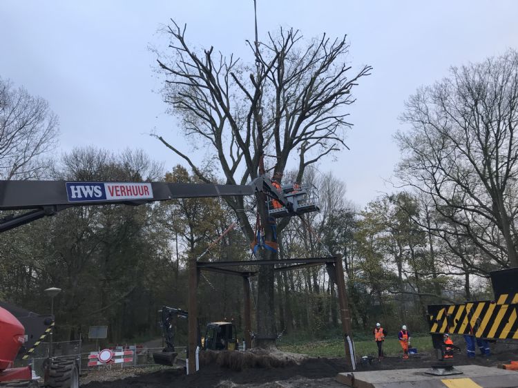 Er is daarom gekozen voor een ‘kluitloze’ verplantmethode. Doornenbal: ‘Deze methode is in Nederland nog nooit toegepast bij het verplanten van bomen. Normaal gesproken maak je een kluit, waarbij je de wortels daarbuiten amputeert. Bij deze manier van verplanten wordt de grond zorgvuldig tussen de wortels vandaan geblazen en gezogen, waardoor het gewicht op de wortels bij de verplanting enorm wordt gereduceerd. Deze methode is wel al eerder succesvol toegepast in de Verenigde Staten, maar niet met dit formaat bomen.’