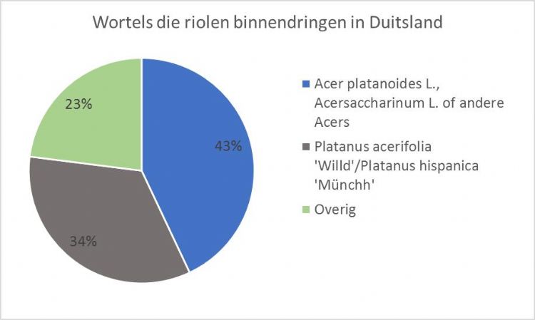 De soorten boomwortels die in riolen binnendringen, verschillen per land (zie grafiek 2).