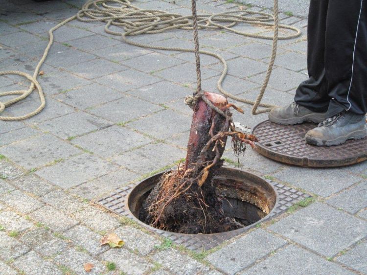 Groenbeheerder Jaap Verhagen van de gemeente Zutphen: 'We hebben best wel last van wortelgroei in riolen in oude wijken. In de loop van de jaren gaan huisaansluitingen gaan een keer kapot en oude gresbuizen verzakken. De afstand van het hoofdriool tot het ontstoppingsputje is de verantwoordelijkheid van de gemeente. De afstand vanaf het ontstoppingsputje is de verantwoordelijkheid van de bewoner. Op de gemeentewebsite staan enkele rioolontstoppingsdiensten waarmee de gemeente samenwerkt; die kunnen bewoners bellen. Soms heeft de gemeente last van blokkades in straatkolken. Daar verwijderen we de wortels door ze met een doorsteekapparaat met freesmachientje te verwijderen en daarna een nieuwe put te zetten. Wij weten dan wel dat het een tijdelijke oplossing is en dat de wortels over drie jaar zijn teruggegroeid. Assetmanagement van gevel tot gevel blijkt voor ons het goedkoopste te zijn. We brengen allereerst in kaart wanneer elementen zoals een riool, straatkolken, trottoir of boom aan vervanging toe zijn. Daarvoor hebben wij als groenafdeling regelmatig overleg met de afdelingen rioolbeheer en civiel onderhoud, zoals wegenonderhoud. Als een boom nog een omlooptijd van twintig jaar heeft, vervangen wij het riool niet; dan passen we een 'kous' toe (relinen). Zo'n kous gaat ook veertig jaar mee. Of we verzetten een straatkolk. Je moet ook nooit lukraak wortels wegfrezen, maar altijd eerst kijken waar de andere wortels van de boom zich bevinden. Het frezen van wortels kan ten koste gaan van de stabiliteit van de boom. De nieuwe rioolbuizen en kolken zijn allemaal van pvc; dat is veel steviger materiaal dan vroeger. We proberen het systeem zo gesloten mogelijk te maken door nauwkeurig te werken bij de toepassing van rubbers en verlijmingen. Ook zetten we sinds een jaar of zes bijna geen bomen meer op kabels en leidingen. De bomen krijgen goede groeiplaatsen. Daarmee zal de wortelgroei in riolen de komende decennia waarschijnlijk verminderen. Bovendien doen we aan risicomanagement. We hebben een 'extreemweerscan' laten maken in Zutphen. Gebieden die extreme overlast ondervinden bij piekbuien, hebben we gemerkt. Daar vervangen we de riolen eerder. De gebieden krijgen dan voldoende afkoppelingsruimte voor het hemelwater naar de bodem.'