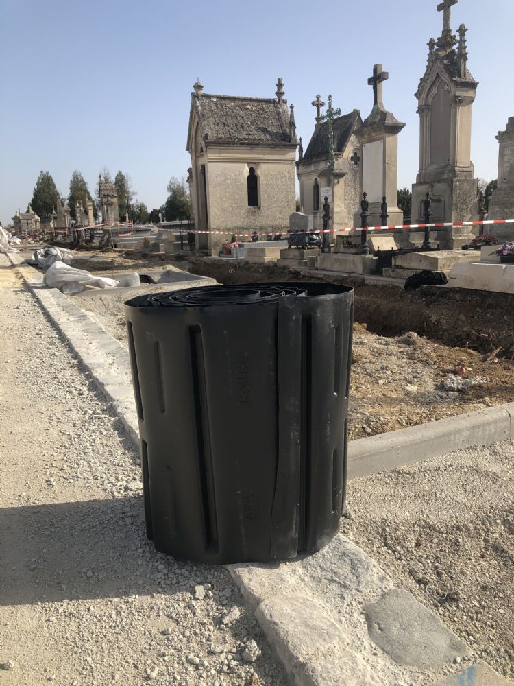 | Installatie van de Rootbarrier Rollrib op de begraafplaats in de Franse stad Troyes |