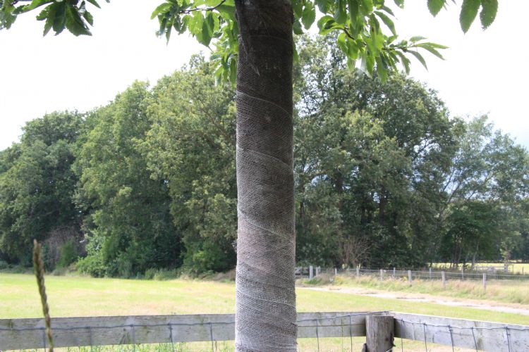 | | De boom is omhuld met jute om de stam te beschermen tegen de zon |