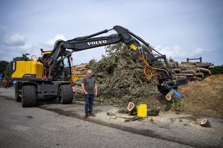 'Groeneveldt is heel flexibel. Je kunt de machine aangepast krijgen zoals je wilt', vertelt Henk Nijeboer, leidinggevende van BTE Nijeboer Landschapsbeheer. 'We hadden eerst grijpers met vijf rechte tanden van Groeneveldt. Maar we werken veel met bomen en omdat die rond zijn, is een grijper met ronde tanden geschikter voor ons. Hiermee kunnen we de stammen beter vastpakken.' Nijeboer heeft nu vijf grijpers met zaagkast van Groeneveldt in bezit. Het zijn allemaal 30cc- zaagkasten. 'Dat soort robuuste machines heb je nodig voor de zware bomen waarmee wij werken.' BTE Nijeboer Landschapsbeheer is in 2000 opgericht en bedient vanuit de locaties in Ede en Ermelo het hele land. Henk Nijeboer heeft een agrarische achtergrond. Johan Groeneveldt, oprichter en eigenaar van Groeneveldt Grijpers, komt ook uit een agrarisch gezin. Hij ging echter niet op een boerderij werken, maar vond een baan bij een transportbedrijf. Om een grote klant die omvangrijke buizen wilde vervoeren beter te kunnen helpen, ontwikkelde Groeneveldt speciale grijpers. Hij was chauffeur, maar deed ook graag laswerk. Zijn grijpers kregen bekendheid. Er kwamen steeds meer aanvragen binnen en Groeneveldt ging zich erop toeleggen. Sinds 2000 houdt hij zich als zelfstandig ondernemer volledig bezig met het maken van grijpers, eerst in de boerenschuur van zijn vader, later kon hij een pand huren.