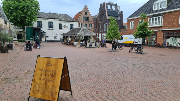 Ritso Sikma: 'De Groeneplaats ligt voor de stoep van het nieuwe gebouw. Vroeger stonden er veel bomen op dit plein. Inmiddels is het centrum autoluw, maar is dit plein wel voorzien van verharding in verband met de wekelijkse markt en braderieën die er worden gehouden en met het goederentransport door leveranciers en met de rijbewegingen van en naar de parkeerplaats van Hotel De Lindeboom.'