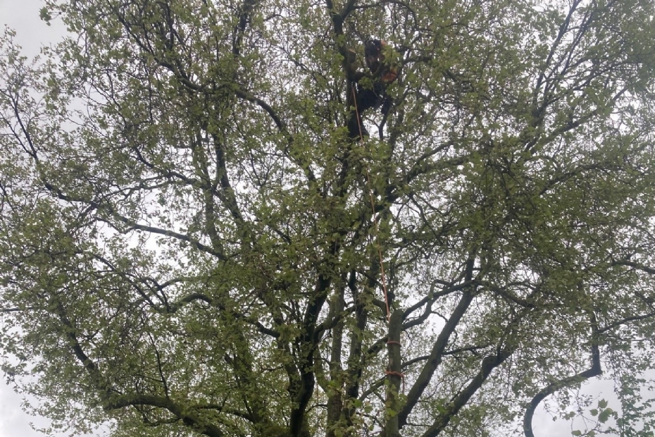 Medewerkers van Nationale Bomenbank en Terra Nostra onderhouden de plataan