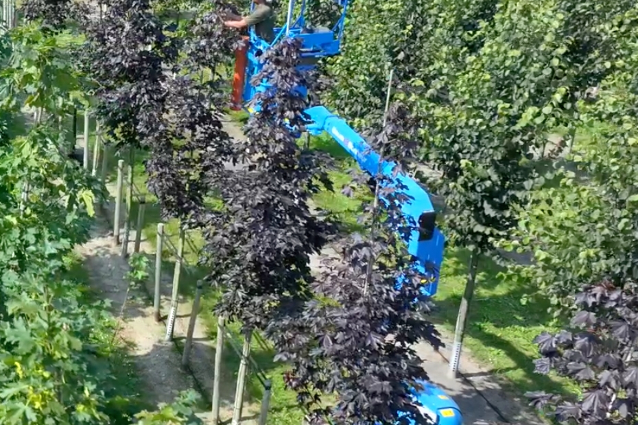 Snoeien is altijd een cruciaal onderdeel van de boomteelt geweest. In de beginjaren gebeurde dit bij boomkwekerijen zoals Boom & Bonheur nog met eenvoudige houten ladders en handgereedschap. Mantje: 'Bomen werden vaak op kleinere schaal gekweekt en de snoeitechnieken waren minder verfijnd dan tegenwoordig. De huidige praktijk is dat bomen met een goede doorgaande spil worden gekweekt, maar destijds waren ze vaak van mindere kwaliteit. Dat is nog te zien is in sommige delen van Amerika, waar nog oudere snoeinormen worden gehanteerd.'