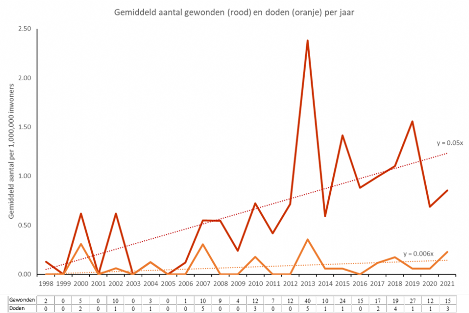 | | Grafiek - gemiddeld aantal gewonden en doden per jaar |
