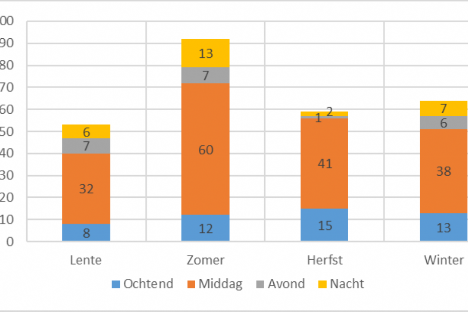 Tijdens de zomermaanden was er een piek in incidenten, die verklaard kan worden doordat mensen dan vaker buiten zijn.