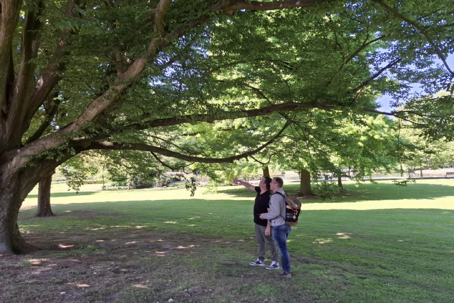 | | Wouter Peeters en Giel Caelen bij een haagbeuk in Sittard-Geleen, deze boom is in 1910 geplant en landelijk monumentaal. |