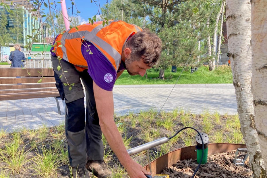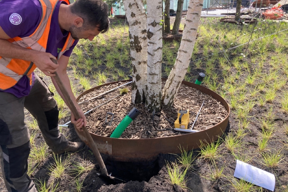 Kortom, het geven van water aan bomen in de nazorgfase is een vak apart. Het draait om de juiste balans tussen de boom stimuleren om zelf op zoek te gaan naar water, en weten wanneer ingrijpen noodzakelijk is. Daarom geldt: geef water op basis van behoefte, niet op basis van frequentie. Om dit goed in te schatten, is maatwerk nodig. Denk aan: per boom bepalen wat de waterbehoefte is; in het veld de bodemvochtigheid meten, bijvoorbeeld met een grondboor, en lokale neerslaggegevens van het KNMI analyseren.