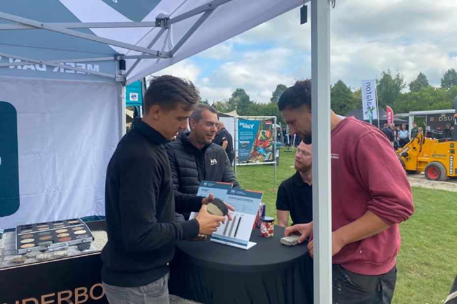 Marcel Petri van DCM geeft uitleg over Soil-Activ. 'De bezoekers zijn echt geïnteresseerd. Vandaag ontmoeten wij echt onze doelgroep.'