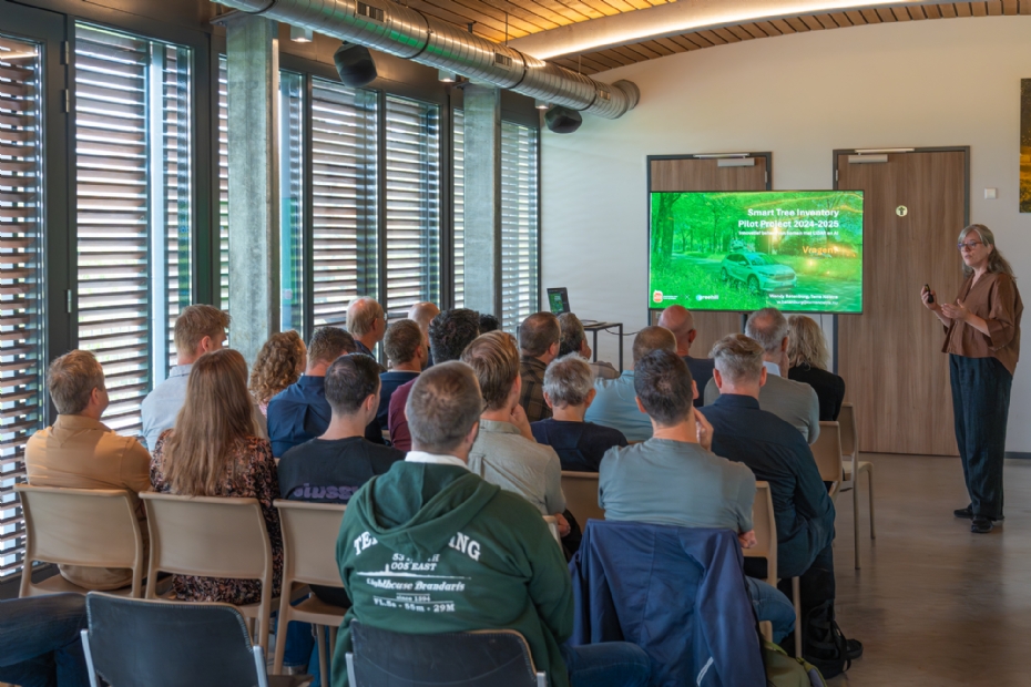 | Overzicht van alle aanwezigen tijdens de presentatie van de pilot digitale boomdata door greehill en Terra Nostra. Foto: Boomkwekerij Ebben |