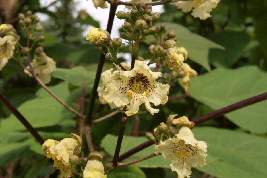 Tot slot Catalpa ovata, eveneens uit China. Deze blijft met circa 7 meter compact. De cultivar 'Slender Silhouette' zou smaller blijven, al zijn er nog weinig voorbeelden. De bladeren zijn tot 25 cm groot, vaak drielobbig, en de bloemtrossen verschijnen in juli en augustus. De gele bloemen met rode binnenkant zijn kleiner dan die van de Amerikaanse soorten, maar minstens zo sierlijk. De peulen zijn 30 cm lang en iets dikker. Kortom: Catalpa verdient veel meer aandacht - in elke brede laan of park hoort er minstens één te staan!