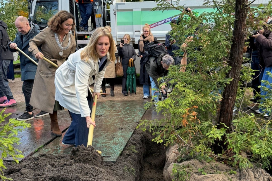 Aanplant van de eerste acht Jubileumbomen ter afsluiting van jubileumjaar Amsterdam 750