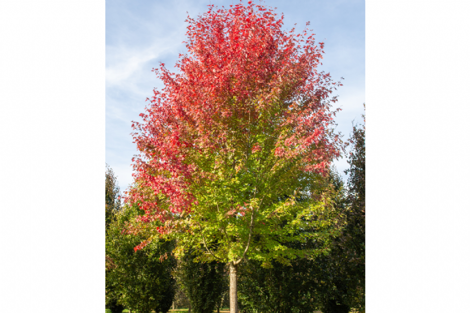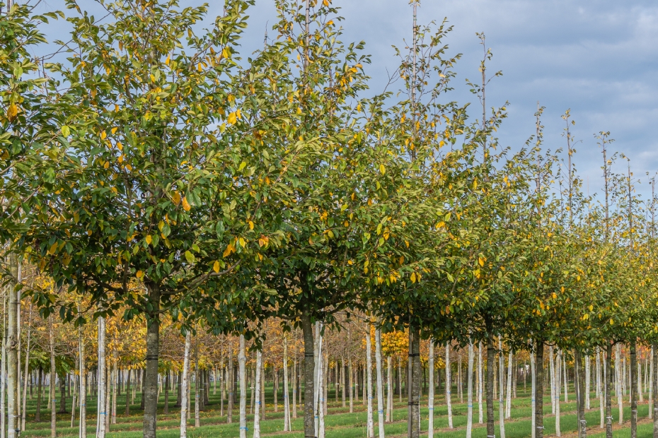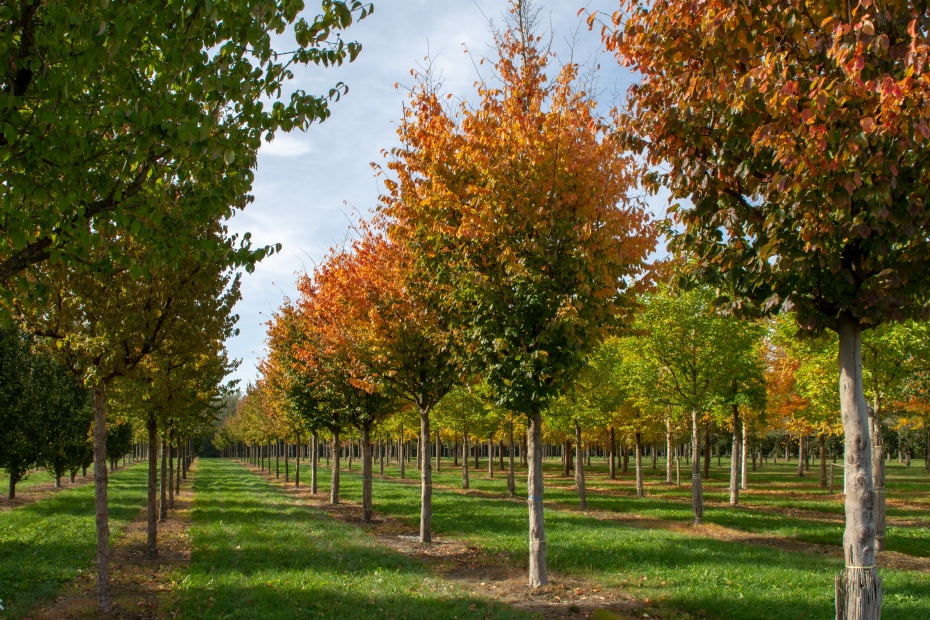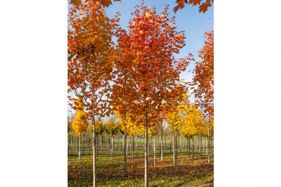 Hybride esdoorns spelen daar bijvoorbeeld op in. 'Acer × freemanii 'Autumn Blaze', een kruising tussen Acer rubrum en Acer saccharinum, combineert snelle groei, sterke takaanhechting en een hoge tolerantie voor wisselende bodemvochtigheid', vertelt Mouwen. 'Dat maakt hem geschikt voor locaties waar perioden van droogte en wateroverlast elkaar afwisselen. Ook Acer truncatum 'Norwegian Sunset', waarin Acer truncatum en Acer platanoides samenkomen, laat zien hoe veredeling kan leiden tot hittebestendig blad, minder zonnebrandgevoeligheid en daardoor een stabiel kroonbeeld.