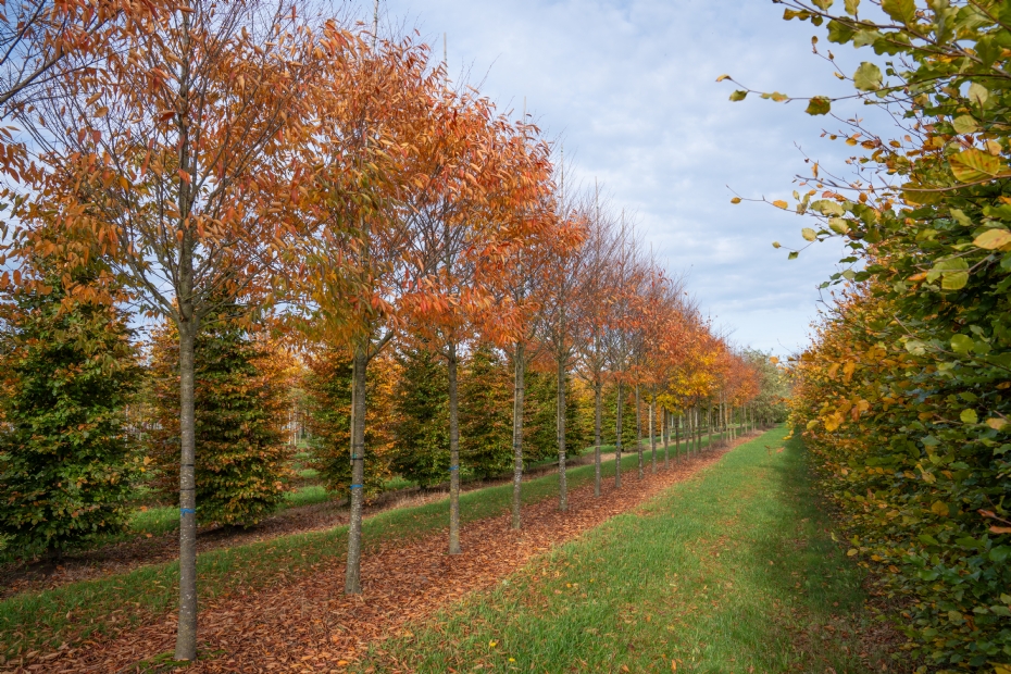 Daarom ziet Mouwen ook buiten het iepengeslacht de kracht van hybriden, namelijk hun flexibiliteit. 'Een opvallend voorbeeld van een flexibele en daardoor sterke kruising is xSycoparrotia semidecidua, een kruising tussen Parrotia persica en Sycopsis sinensis. Deze hybride combineert de sterke houtkwaliteit en stressbestendigheid van Parrotia persica met de flexibiliteit en het deels wintergroene karakter van Sycopsis sinensis. Vraag jezelf maar eens af waarom kruisingen in de dierenwereld, zoals hondenkruisingen, vaak sterker zijn: omdat ze genetisch breder zijn. Dat geldt bij bomen natuurlijk net zo.' Overigens blijft Parrotia persica zelf volgens Mouwen ook een betrouwbare soort voor stedelijke toepassingen: tolerant voor droogte, hitte en luchtverontreiniging, met een sterke structuur en een hoge levensduur.