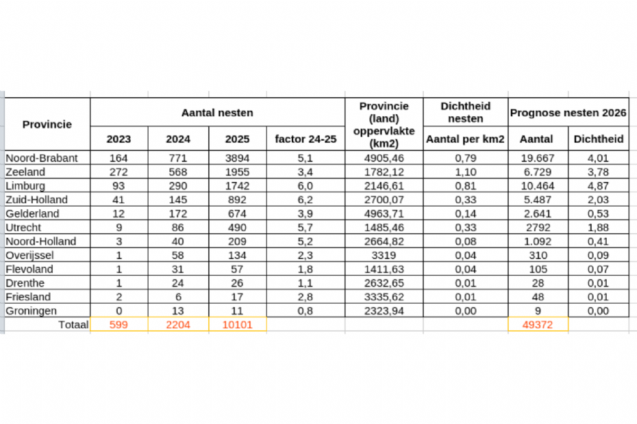 | | Bron: NBV in samenwerking met Taskforce Aziatische hoornaar |