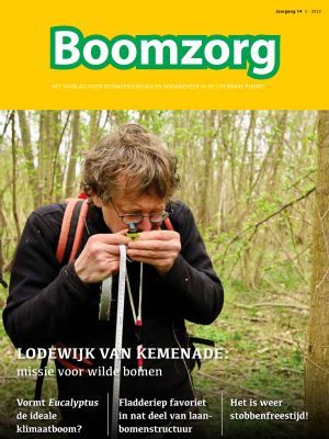 Het vijfde nummer alweer van vakblad Boomzorg. In deze boomrooien-special houden we ons niet bezig met kappen, blijkt uit de verhalen van onder meer Van Weert en Weijtmans. Waar we volgens die laatste wel mee moeten kappen zijn die rare plankjes die geen enkele bescherming bieden voor boomwortels. Beschermen staat ook boven aan het lijstje van Dion van Zoggel, boomspecialist in ’s-Hertogenbosch. Daarbij zou ook GAES een rol kunnen spelen. Een van de Bossche monumentale bomen vind je trouwens terug in het achtergrondverhaal over de Nationale Bomen Top 50. Bomenbehoud is ook de missie van Lodewijk van Kemenade met zijn ‘Wilde Bomen’, terwijl Noordplant onderzoekt wat Eucalyptus kan betekenen bij problemen met wilg. Een van de favoriete soorten van Thomas de Ruiter van Udenhout is de fladderiep, terwijl JP Mauritz in stijl afscheid van ons neemt met voedselbosheld Toona, de uiensoepboom. Dit en meer lees je in de nieuwe Boomzorg!