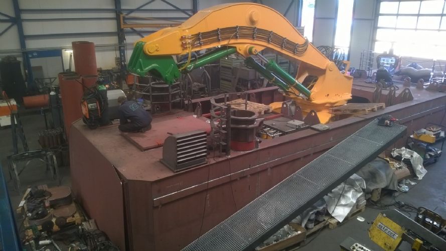 Groeneveld Grijpers uit Groot Amers bouwt momenteel in opdracht van Damsteegt Waterwerken de tweede kraanboot, de 'Utrecht 2'.