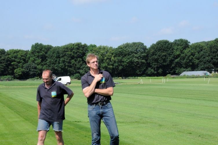 De maaier in kwestie krijgt 'maailes' van Henco Vink. Via de teach & playback-mode kan Vink een bepaald tracé rijden. Deze routes worden opgeslagen in het geheugen van de maaier en later naar behoeven afgespeeld. Voor één proefveld worden verschillende routes gemaakt, zodat de maaier niet steeds in het hetzelfde spoor maait. Hoewel de teach & playback-technologie al weer enige jaren oud is, is de maaier in kwestie toch redelijk bijzonder. Het is de eerste keer dat een Jacobsen-maaier gerobotiseerd wordt met techniek van Probotiq, en daarnaast is het ook de eerste cirkelmaaier en de eerste maaier buiten de golfsport met robottechnologie. Het hoofd van het kweekstation van Barenbrug, Piet Arts, over de keuze voor de gerobotiseerde cirkelmaaier: 'Normaal werken wij altijd met kooimaaiers. Dat werkt niet altijd handig. Op een aantal proefvelden werken wij met betredingsmachines. Die brengen zo veel zand en andere ongeregeldheden op het veld, dat je extreem veel slijtage aan de kooien hebt.' De keuze voor Jacobsen is wel gebleven. Arts: 'Dat vonden onze mensen de prettigste maaier. Belangrijk voordeel was dat je goed zicht op het werk hebt.' Robotmaaier De keuze om met een robotmaaier te gaan werken, is bij Barenbrug niet ingegeven door de wens om te besparen op arbeid. Arts: 'Met deze maaier werken wij in het seizoen ongeveer tien uur per week. In die tijd kunnen we de extra investering van ongeveer 30.000 euro bovenop de 35.000 die de maaier alleen kost waarschijnlijk niet terugverdienen. Het is mijn bedoeling om in deze voor ons drukste tijd van het jaar extra uren vrij te maken om andere klussen te doen.' Arts: 'Investeringen zijn bij ons eigenlijk nooit strikt economisch onderbouwd. Wij kopen een proefveldcombine om graszaad te oogsten van een ton. We hebben die machine gewoon hard nodig, maar efficiënt is het natuurlijk niet. We zouden ook loonwerkers kunnen inzetten, maar we hebben veel precisiewerk en bij de inzet van loonwerkers is het risico op fouten groter. De investering in proefvelden is daarvoor veel te hoog.' Dat verklaart ook het driedubbele elektriciteitsdraadje rond het proefveld dat Vink aan het voormaaien is. Arts: 'Dit is een proefveld van drie jaar oud, dat we nog ongeveer een half jaar in beoordeling hebben. Op een ouder veld zitten natuurlijk engerlingen en emelten. Omdat in de bossen hier rondom dassen zitten, hopen we die buiten de deur te houden.' Kinderziektes Dit is de eerste Jacobsen die voorzien is van de Probotiq-technologie. Zorgt dat niet voor extra kinderziektes? Allard Martinet van Probotiq daarover: 'Voor ons geldt dat iedere nieuwe maaier zorgt voor nieuwe technische uitdagingen. Dat het hier om een Jacobsen gaat en niet om een Toro, maakt eigenlijk weinig verschil.' 'Arts: 'Alle machines die wij aanschaffen, zijn uniek. Wij zijn dus gewend aan kinderziektes. Het enige belangrijke is dat er snel wordt ingegrepen en dat is het geval. De service van Probotiq is uitstekend.' Robotmaaier Waarom heeft Barenbrug niet gekozen voor een professionele uitvoering van een robotmaaier die niet op gps werkt? Arts: 'Dat werkt voor ons niet. Zo'n maaier gaat kriskras het veld over en maait sommige plekken meer dan andere. Voor de beoordeling van de verschillende rassen geeft dat geen goed beeld. Overigens is ook DSV Zaden in Venzelderheide met deze manier van maaien gestopt.'