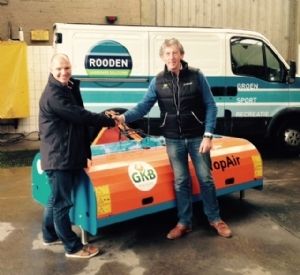 De TopAir helpt Rooden Landscape Soltions, dat zich onder andere richt op het onderhoud van sportvelden, het gras in goede conditie te houden. De GKB TopAir rolt en belucht en is in staat Engerlingen te bestrijden.