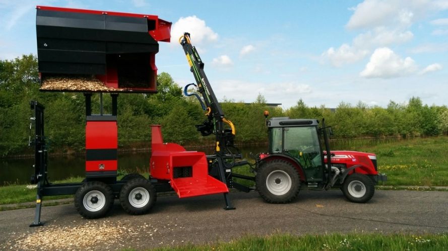 "Wij kregen steeds meer vragen uit de markt naar kleine compacte versnippercombi's. Met deze combi zijn wij er in geslaagd om een compacte machine te combineren met een kraaningevoerde versnipperaar en een houtkraan", aldus Peter Kloosterhuis.