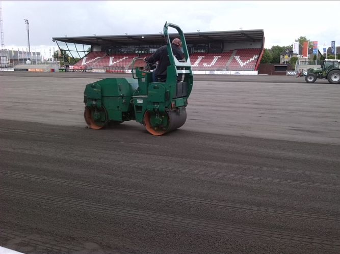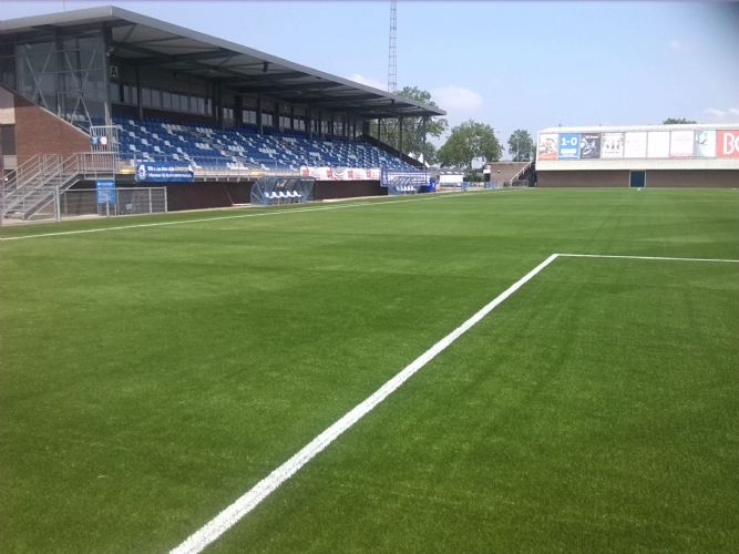 In het seizoen 2013/2014 kwamen er meldingen binnen van 1e selectie-spelers over verslechtering van het kunstgras op sportcomplex De Westmaat. Na constructief overleg tussen gemeente en clubs werd eind 2014 besloten om over te gaan tot vervanging van de bestaande kunstgras(hoofd)velden (2 stuks). De gemeente Bunschoten ging aan de slag om de vervanging van de toplagen te realiseren. Voor het advieswerk werd een beroep gedaan op buro Boot. Onderzoek, inventarisatie, afstemming met KNVB en marktonderzoek met beide clubs (eindgebruikers) resulteerde in de keuze voor een geweven kunstgrasveld met een schokdempende foamlaag. Na aanbesteding werd het werk gegund aan Greenfields B.V. Daarna begon het werk op beide hoofdvelden. In goede samenwerking tussen alle betrokken partijen werden de bestaande kunstgrasmatten verwijderd, de sporttechnische laag opnieuw geprofileerd, de schokdempende foamlaag aangebracht, de geweven kunstgrasmat aangebracht, en het zand en de "groene" SBR-rubber ingestrooid. Tot slot werd de belijning gespoten. Het resultaat mag er zijn. Het veld oogt natuurlijk. Daarnaast is door de groene rubber-infill het veld in de zomer minder warm. De huidige "zaterdag topklassers" hebben weer een topveld. Verdere bijzonderheden (bijvoorbeeld bijzondere technieken): Toepassen van een toplaag van een schokdempende foamlaag en geweven kunstgrasmat. SBR rubber is gecoat in groene kleur. Aanneemsom: 439.500,= euro, exclusief B.T.W. en projectbegeleidingskosten. Naam opdrachtgever: Gemeente Bunschoten Contactpersoon opdrachtgever: de heer P. de Bourgraaf Contactgegevens opdrachtgever: Postbus 200, 3750 GE BUNSCHOTEN-SPAKENBURG telefoon : 14 033 Naam architect: BOOT Contactpersoon architect: de heer W. Hendriks Contactgegevens architect: Postbus 509, 3900 AM VEENENDAAL telefoon: 0481 - 377 165 Naam aannemer: GreenFields B.V. Contactpersoon aannemer: mevrouw M. Lasersoms Contactgegevens aannemer: Nylonstraat 7, 8281 JX GENEMUIDEN telefoon : 038 - 33 72 010