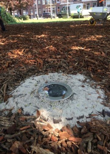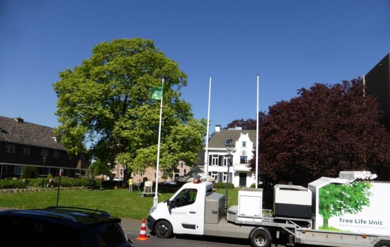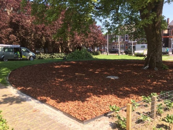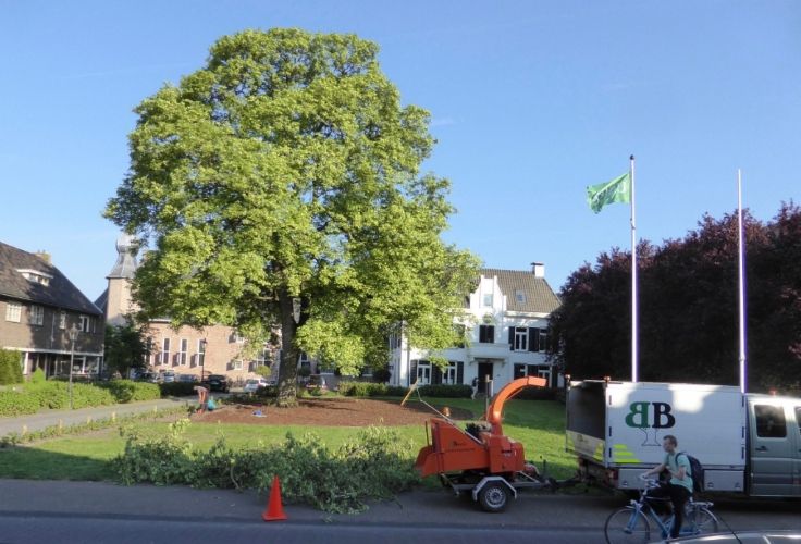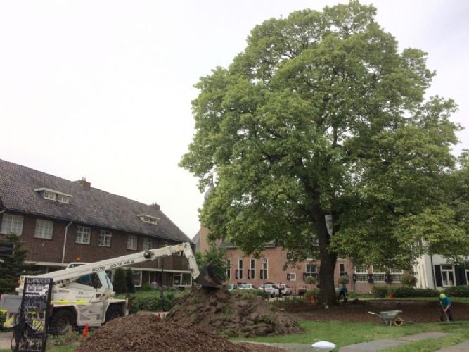 De 30 jaar oude kroonverankeringen zijn vervangen, de ondergrond is middels "ploffen" belucht en bemest. De dichte graszoden is binnen de kroonprojectie met inzet van een roterende verreiker icm handkracht verwijderd, waardoor geen extra verdichting op trad. Er is een Cortenstalen borderrand aangebracht, om betreding met maaimachines te voorkomen. Hierbinnen is eerst een laag schimmeldominante compost aangebracht. De verlichting onder de kroon is weer teruggeplaatst. Daarna is de boomspiegel afgewerkt met Dennenbast en zijn er 4 kg compostwormen uitgezet. Als afsluiting is de boom ook nog gesnoeid. Het is weer een "plaatje" zo kan hij er weer jaren tegen. Aanneemsom: 4.500,- euro excl Naam opdrachtgever: Gemeente Coevorden Contactpersoon opdrachtgever: Lambert Westerhof Projectbegeleiding: Landschapsbeheer Drenthe ( Bomenwacht Drenthe ) Contactpersoon: André Efftink Contactgegevens: 0592-316616 Naam aannemer: Brand Boomverzorging Contactpersoon aannemer: Gerard Brand Contactgegevens aannemer: 0528-231344