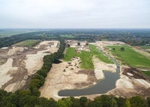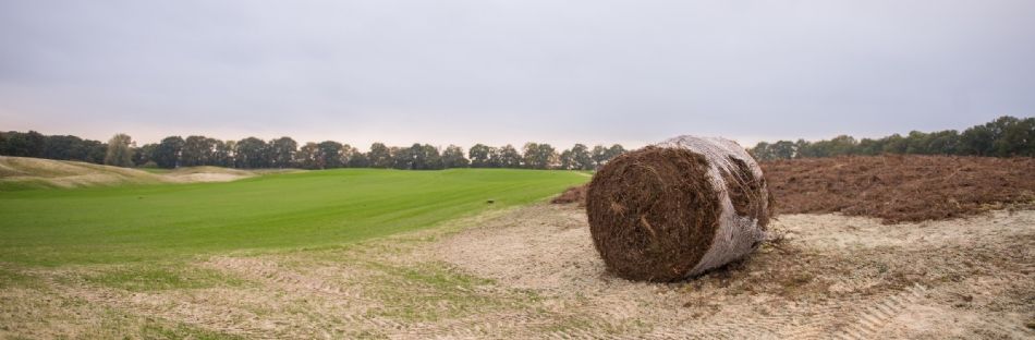 Het uitgestrekte werkgebied bestaat uit drie compartimenten en met name in compartiment 1 is de ontwikkeling inmiddels al goed zichtbaar. In september werd er ingezaaid middels hydroseeding met mengsels van Barenbrug. Inmiddels is het gras opgekomen en kleurt de golfbaan groen. Ook zijn er na het eerdere spitwerk tussen de verschillende holes heidegebieden en zandverstuivingen aangebracht, zo laat aannemer Jos Scholman weten.