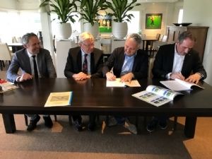 Afgelopen zaterdag tekenden Frank de Ridder en Arie-Jan de Ridder (beiden directeur van De Ridder B.V.) en Hans van Weezel en Peter Burghouwt (voorzitter en penningmeester van Golfclub Zeegersloot) gezamenlijk het onderhoudscontract. Naast het dagelijks onderhoud willen beide partijen de kwaliteit van de golfbaan naar een hoger plan tillen. In 2017 en 2018 staan daarom enkele renovaties op het programma.