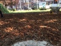 De dichte graszoden is binnen de kroonprojectie met inzet van een roterende verreiker icm handkracht verwijderd, waardoor geen extra verdichting op trad. Er is een Cortenstalen borderrand aangebracht, om betreding met maaimachines te voorkomen. Hierbinnen is eerst een laag schimmeldominante compost aangebracht. De verlichting onder de kroon is weer teruggeplaatst. Daarna is de boomspiegel afgewerkt met Dennenbast en zijn er 4 kg compostwormen uitgezet. Als afsluiting is de boom ook nog gesnoeid. Het is weer een “plaatje” zo kan hij er weer jaren tegen.