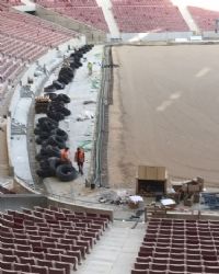 Autonome aansturing In het veld is 33 kilometer aan verwarmingsslangen geïnstalleerd in de lengterichting van het veld. Deze slangen zijn aangesloten op een leidingensysteem dat de warmte over drie secties in het veld brengt. De hoofdleidingen lopen door naar de technische ruimte van het stadion, waar VB Projects eerdaags de pompgroepen zal installeren. Het systeem zal worden aangestuurd door een autonoom werkend regelsysteem van VB Projects. Op verzoek van het stadion kan deze regeling geheel of gedeeltelijk worden overgenomen.