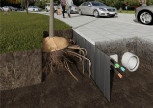 Jaren geleden bracht het bedrijf wortelgeleidingspanelen met verticale ribben op de markt. De ribben zorgen ervoor zorgen dat de wortels diep de grond in worden geleid - om van daaruit horizontaal te groeien. Dat maakt dat de panelen dicht rondom de boom geplaatst kunnen worden.