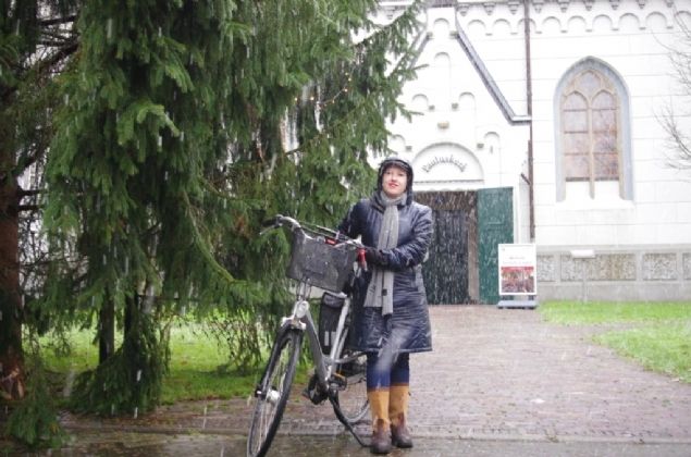 Er trekt net een regenbui over als een redacteur van Stad+Groen en Mariska de Koning, wethouder van Baarn, een rondje door de stad fietsen voor de rubriek 'Op de fiets'.