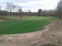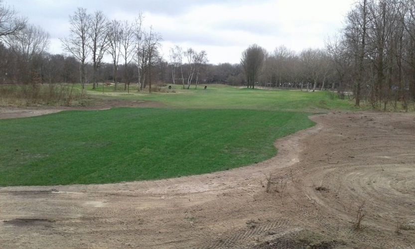 Ecologische waarde Op hole 3 is de carry ingekort en van dat stuk is de oude toplaag verwijderd. De ondergrond is opnieuw ondulerend gemoduleerd en voorzien van graszoden. Bij het werk op hole 4 is de roughzone opgeschoond en verschraald met zand uit de ondergrond. Door het zand omhoog te halen, krijgen de inheemse planten (zaden) die zich in het zand bevinden een kans om te ontkiemen en te groeien. Hiermee hoopt de aannemer de ecologische waarde te verhogen.