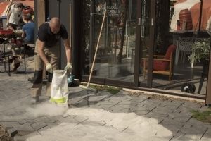 | | Jack Weijers van Normeco brengt ecologisch voegsel aan |