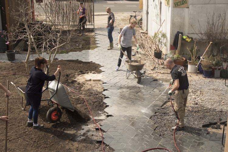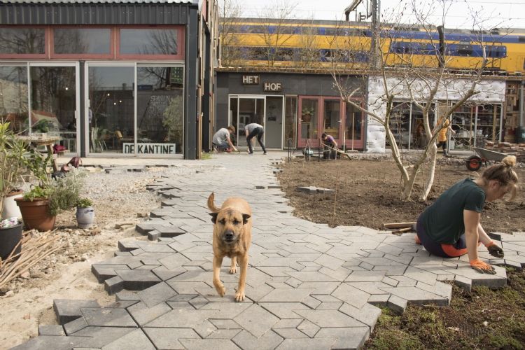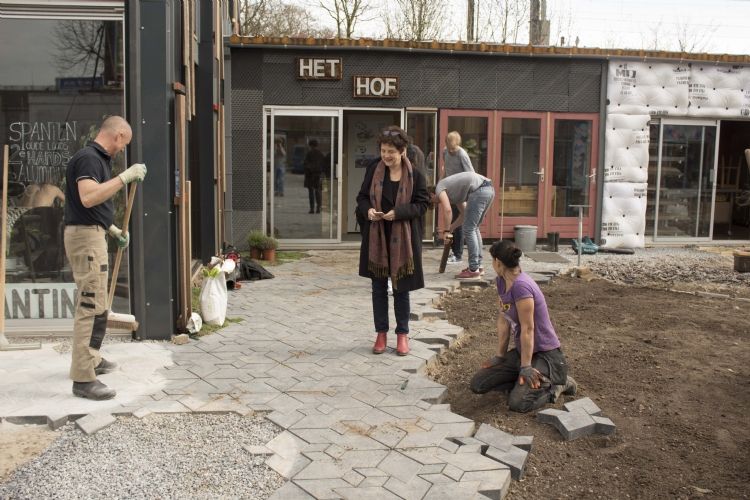 Vorige week dinsdag zijn in het Hof van Cartesius te Utrecht de paden aangelegd voor de binnentuin. Het Hof van Cartesius is een groene werkomgeving voor duurzame ondernemers met in het hart een groene binnentuin. Met het aanleggen van de paden is de binnentuin bijna klaar.