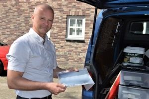 Shaun Heijbers van Heijbers & Verkleij Hoveniers in Rijswijk werkt sinds vier jaar met Aqua XP. 'Voor die tijd kwamen er in een kort tijdsbestek veel voegmiddelen op de markt, maar door deze wildgroei zag je op een gegeven moment door de bomen het bos niet meer. Het ene middel verwerk je nat, het andere middel moet je juist droog verwerken en daarna natmaken. Zo had elk middel zijn eigen verwerkingsadvies. Aqua XP is toch het prettigst te verwerken en heeft ook het beste resultaat. Normeco heeft het middel hier ook gedemonstreerd en uitgelegd hoe we daar het beste mee kunnen werken. En het "voegmaatje", een roller om de voeg mee af te rollen, is ook erg handig.