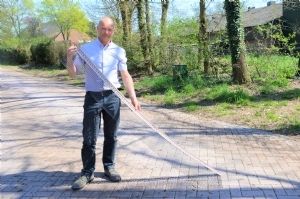 ‘Er zit een netje aan vast. Als je de tegel daarop legt, verschuift die band niet meer’, verduidelijkt Weijers. ‘Zo worden de tegels dus heel stabiel neergelegd.’