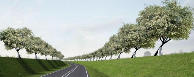 Het Witte Lint is een natuurkunstwerk, dat 1,6 miljoen euro kostte. Het is opgebouwd uit 1.177 witte meidoorns, die speciaal hiervoor schuin werden opgekweekt. Ze hangen bomen witte granieten palen en staan op lage, met gras begroeide dijkjes.