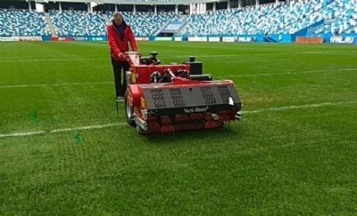 Voetbalvelden ondergaan tijdens een wedstrijd zware stress, vooral in geval van slidings. Stress treedt ook op tijdens het onderhoud van de grasmat, door de werkgangen met de machines, maar ook door het onderhoudspersoneel die over het veld loopt. Lagere bodemdruk Traditioneel wordt een (compact) tractor ingezet bij onderhoudswerkzaamheden als het beluchten, bezanden, verticuteren, kriebelen, zaaien en vegen. Tractors kunnen echter schade aan het oppervlak veroorzaken, vooral wanneer de velden zacht zijn en na langdurige regenval in de wintermaanden, met het risico dat de tractorbanden het speeloppervlak markeren. Roman Zhukov is groundsman in het stadion van Nizhny Novgorod en gebruikt de walk-in-front Redexim Carrier, omdat de bodemdruk op de grasmat de helft lager is dan van een tractor.