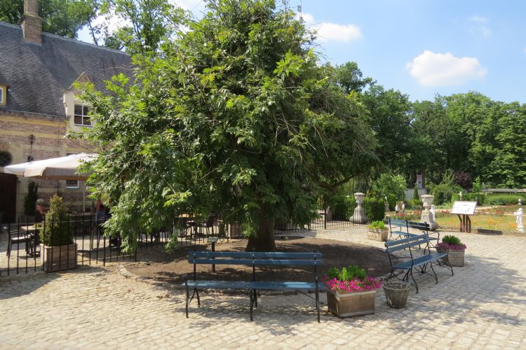 De boom staat op een plein dat is opgehoogd met puin van kasteelrenovaties uit het verleden