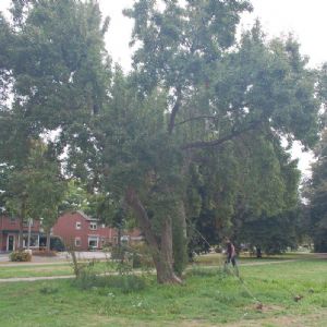 In de gemeente Hellendoorn staan 28 duizend laan- en straatbomen, waarvan nog steeds 10 duizend eiken. Die monocultuur levert de bijbehorende problematiek van de eikenprocessierups op, met tienduizenden euro’s aan jaarlijkse bestrijdingskosten. Ook in de kern wordt gedund in het eikenbestand. Van der Wal: ‘Zo hebben we een heel Amerikaanse eikenlaantje van 80 jaar oud voor de helft verwijderd, dat vroeger in landbouwgebied stond en waar nu seniorenwoningbouw was. Snoeien vonden we te rigoureus. Door de helft weg te halen, bleef er toch een mooi laantje over. Er was geen tegenstand, want in deze gemeente is veel groen. Bovendien was er inderdaad overlast; de bewoners kunnen nu weer genieten van de zon.’