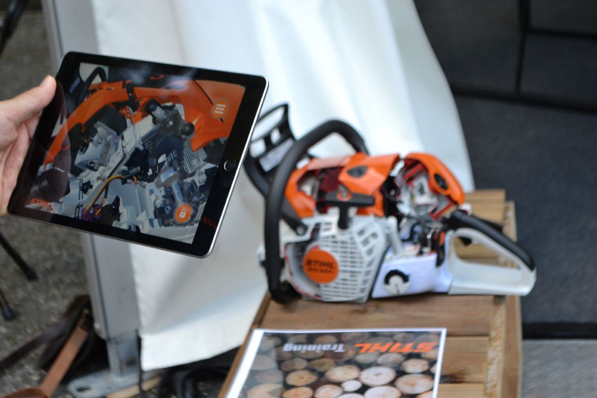 Augmented reality wordt gebruikt met de Stihl AR2Go-app. Gebruikers kunnen geselecteerde Stihl-producten demonteren en de afzonderlijke onderdelen van alle kanten bekijken. Hiermee krijgen ze inzicht in het ontwerp van het gereedschap en dat vergroot het technisch inzicht. De trainingen zijn het afgelopen jaar uitgerold in meer dan 160 landen.