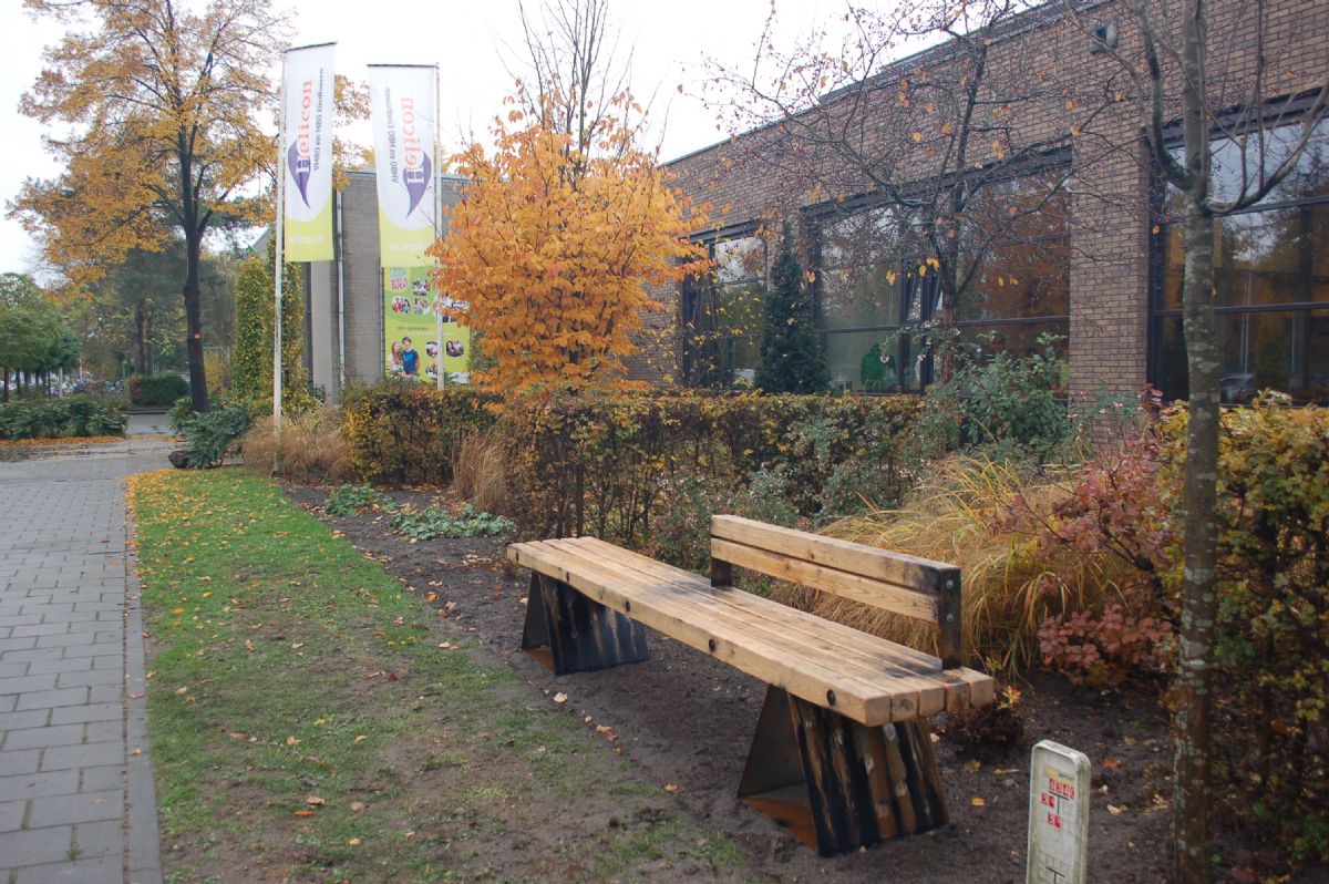 Boomverzorgingsstudenten richtten de groeiplaats in, hoveniersstudenten plaatsten het bankje