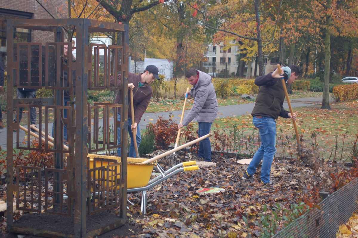 Geurts: ‘Omdat we 30 kuub leem hebben verwijderd en er in totaal 9 kuub minder voor terug hebben gebracht, ligt de groeiplaats wat lager. Dit is niet erg, want elk najaar brengen studenten 10 cm vers blad aan. Na een jaar is dat ingeklonken tot 1 cm. Om een boom duurzaam te laten uitgroeien, wordt de stelregel aangehouden dat per jaar een kuub goed doorwortelbaar volume in de groeiplaats nodig is. Deze groeiplaats is pakweg 50 kuub.’