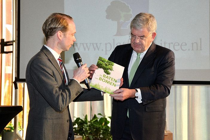 Burgemeester Jan van Zanen van Utrecht heeft het eerste exemplaar van de ‘De baten van bomen, resultaten van i-Tree Eco in Nederland’ in ontvangst genomen. Dit gebeurde onder grote belangstelling van gemeentelijke groenbeheerders, beleidsmakers, planontwikkelaars, ontwerpers en boomspecialisten.