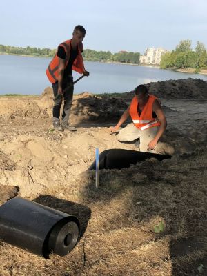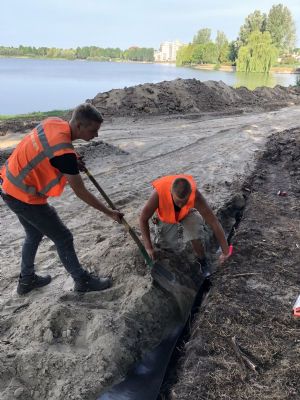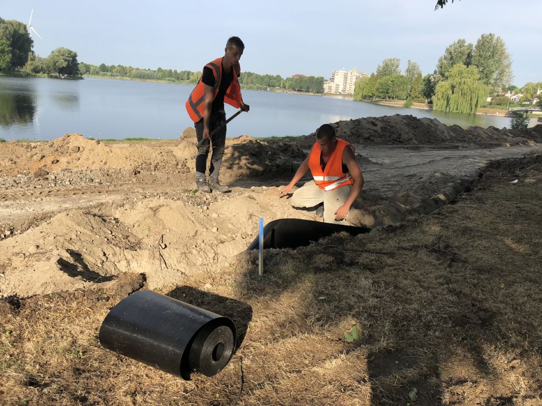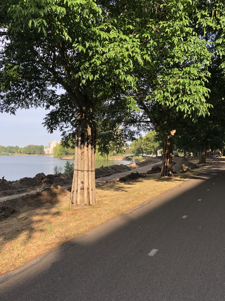 Er is nu voor gekozen om wortelwering langs de bomen te plaatsen, om wortelopdruk tegen te gaan. Het wandelpad is weggehaald door Mouwrik Waardenburg, waarna de RootControl-wortelwering van GreenMax is geïnstalleerd. Hierna is een nieuw, 'wortelopdrukvrij' pad aangelegd, dat in de toekomst ook opdrukvrij zal blijven, aangezien de boomwortels worden geblokkeerd door het wortelweringsscherm.