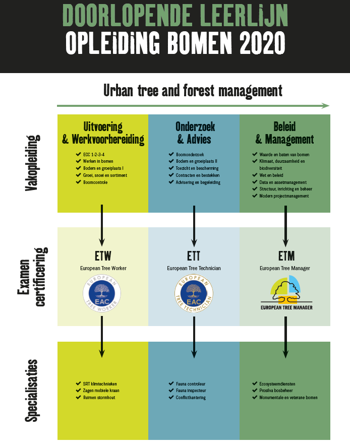 De opleiding moet een logische aanvulling worden op de huidige ETW en ETT opleiding. Het bomenvak is volop in beweging. Boombeheer was voorheen vooral gericht op kostenbeheersing en veiligheid. IPC ziet dat deze focus wordt verschoven naar zaken zoals biodiversiteit, klimaatbeheersing en duurzaamheid. Onderdeel van de nieuwe opleiding is ook boom data en assetmanagement, waarde en baten van bomen en structuur, inrichting en beheer.