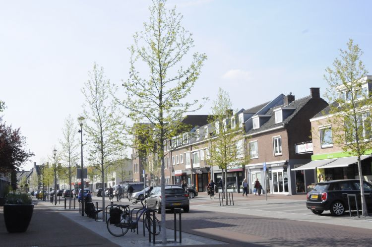 Colen en Stip kijken een beetje teleurgesteld als ik uitleg dat het artikel niet gaat over het juridische kader waarin ambtenaren moeten opereren, maar over de praktijk en het toepassen van bomen. Beiden leggen uit dat er ook op dat gebied in Elst het nodige te vertellen is. Tussen de regels is duidelijk te merken dat het in Elst vooral om een goed klimaat voor bomen gaat. Natuurlijk is sortiment belangrijk en ook daar hebben Stip en Colen een visie op, maar belangrijker is het inrichten van een goede plantplaats, zowel ondergronds als bovengronds. Op dit gebied heeft de gemeente Overbetuwe wel het nodige te melden, bijvoorbeeld over de herinrichting van het Europaplein in Elst, op loopafstand van het gemeentehuis. Voor dit plein is Platanus x hispanica 'Tremonia' gebruikt. Deze Spaanse oftewel gewone plataan wordt op veel lijstjes van klimaatbomen genoemd en is bovengemiddeld goed op het gebied van droogteresistentie, maar kan ook enige tijd met zijn wortels in het water staan. Hoe dan ook, deze boom heeft het goed gedaan. Ik spreek Colen en Stip aan het begin van het groeiseizoen. Beide heren kunnen dus nog weinig zeggen over de groei die de platanen in 2019 gaan maken. Aan de voorwaarden is in ieder geval voldaan. Iedere plataan - maar dat geldt ook voor alle andere bomen die in Overbetuwe geplant worden - heeft minimaal 25 kuub goed substraat meegekregen.