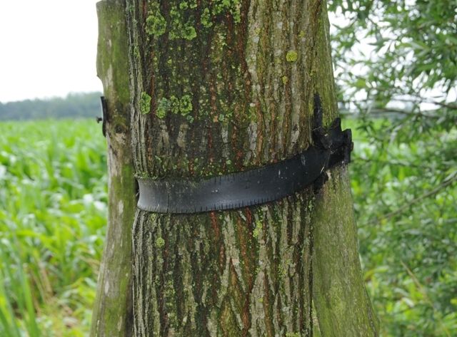 In het Gelderse Bergharen staat op een natuurterreintje van Het Gelders Landschap een rij wilgen. Misschien zes of zeven jaar geleden geplant. Helemaal zoals het hoort, met twee boompalen in de heersende windrichting. Een ding is vergeten: de boompalen tijdig te verwijderen.